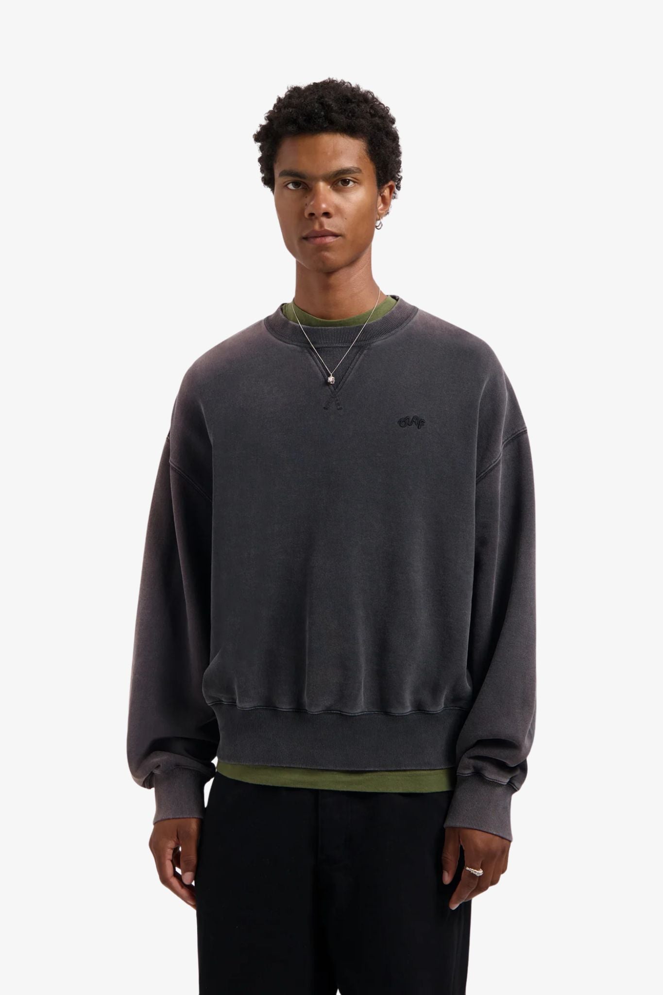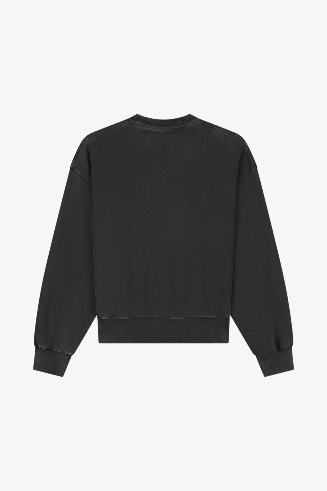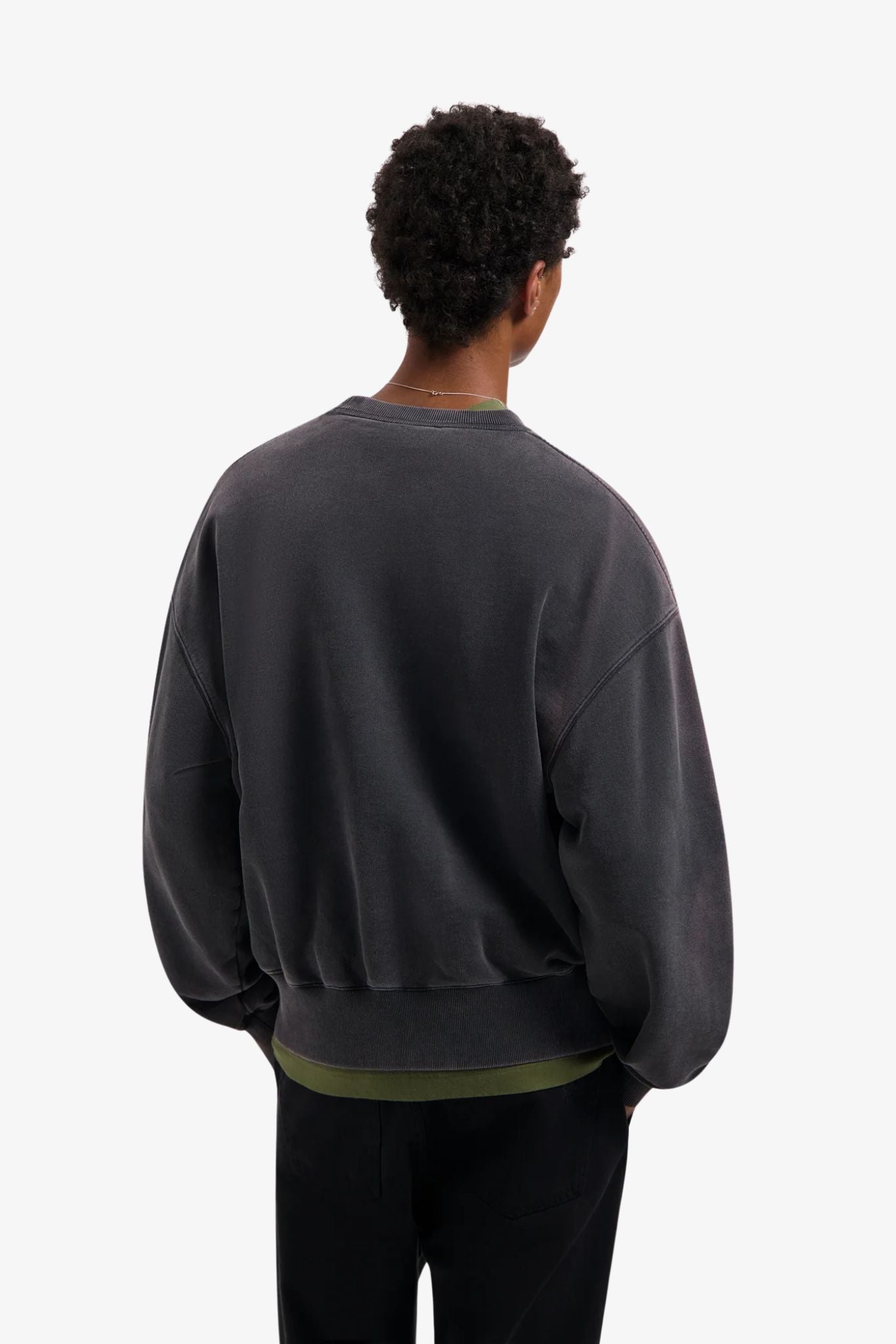 The Washed Signature Boxy Crewneck in Charcoal brings a soft, vintage-inspired feel to a modern silhouette. Crafted from heavy 100% organic cotton with a subtle fade-out wash, it features a boxy fit, dorito neck detailing, and signature logo embroidery at the chest.