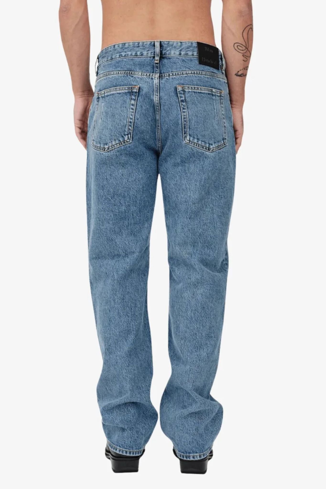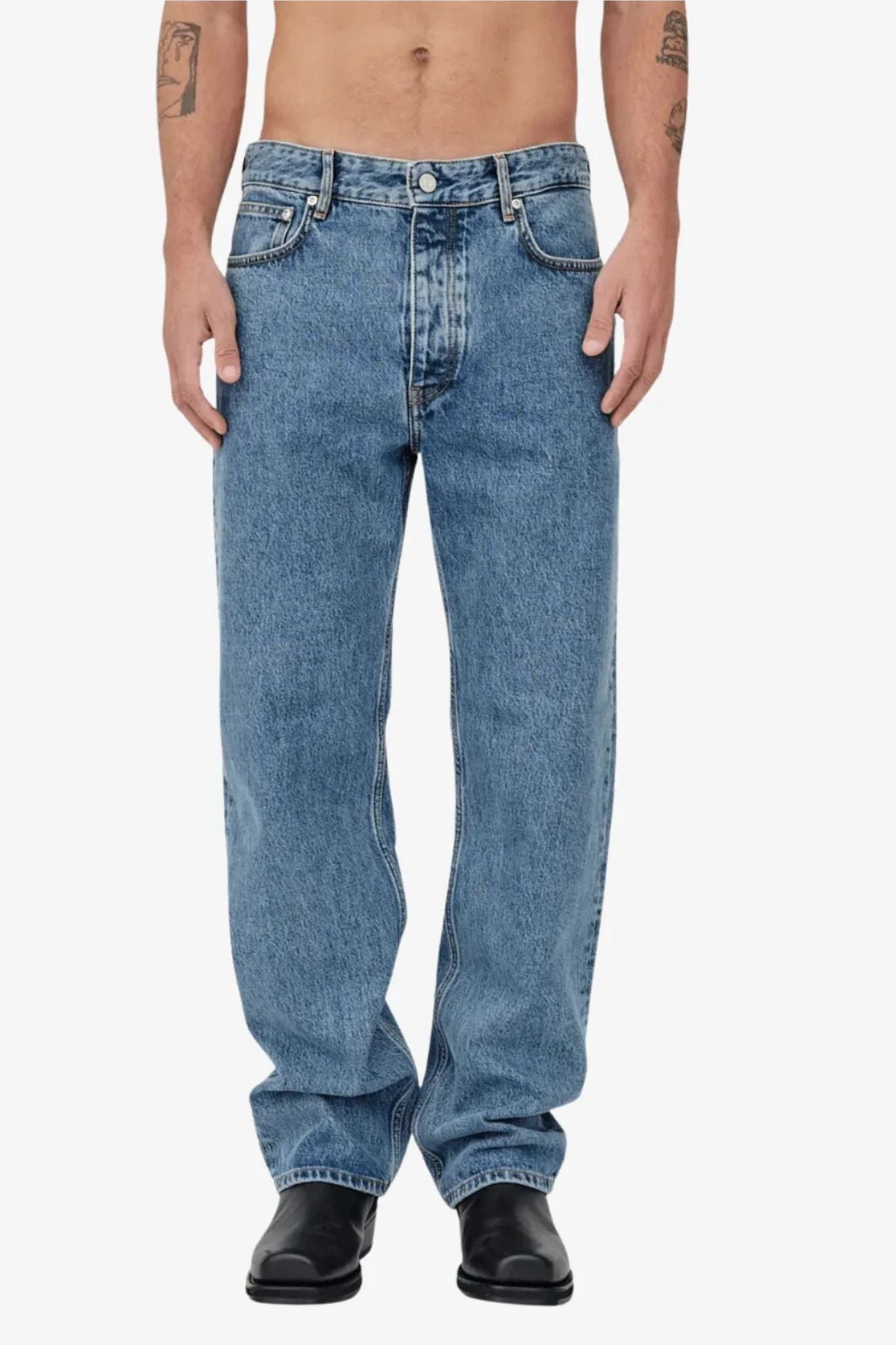 Ontdek de Steve loose fit jeans voor heren, geïnspireerd op de modetrends uit de jaren 90. Deze zwart, lichtblauw of blauwgekleurde denim heeft een relaxed silhouet en een halfhoge taille die ideaal is voor een comfortabele, casual look. De rechte pijpen en knoopsluiting zorgen voor een eigentijdse twist.