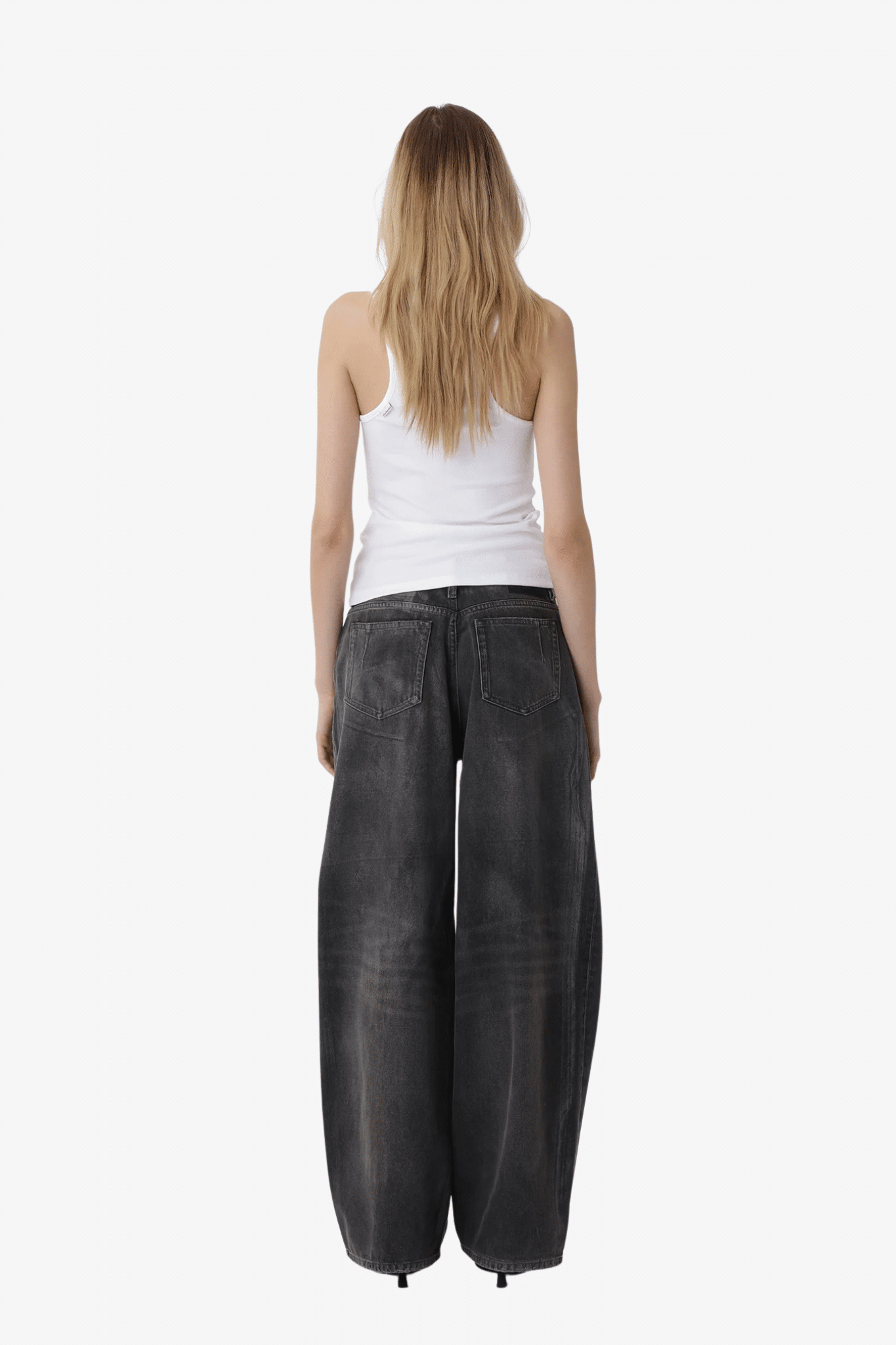 The Won Hundred Lyon is a unisex jeans featuring a baggy fit, designed for a modern and comfortable style. It has a low rise waist and wide, slightly tapered cocoon-shaped legs. For those preferring a higher waist, selecting one size down is recommended. Crafted from organic cotton with a black coating, this jeans offers a durable and sophisticated look. Equipped with a metal logo button and zipper closure, the Lyon is perfect for everyday wear where comfort meets style. For any questions or further information, our customer service team is available to assist you.