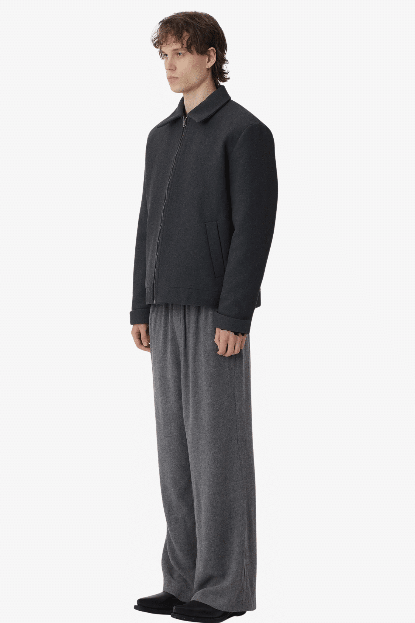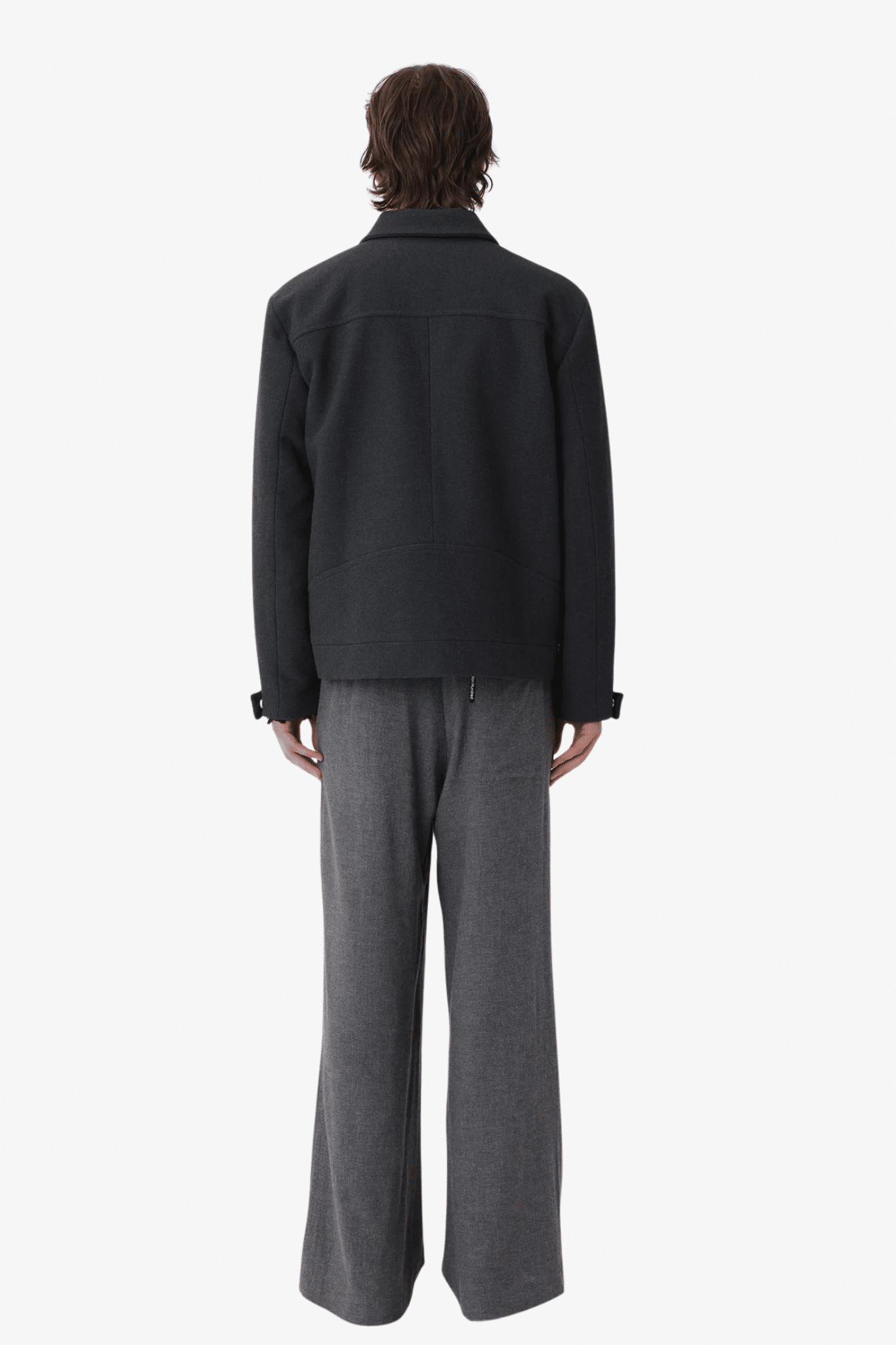 The Peter Jacket by Won Hundred features a distinctive semi-oversized design crafted from a unique twill weave. Presented in a deep dark grey, this jacket offers a striking silhouette suitable for a range of occasions, from casual to smart casual. It includes a front zipper for easy adjustment to changing temperatures. The cuffs are detailed with Won Hundred’s signature metal logo buttons, adding a subtle yet stylish finishing touch. Made from a durable wool blend consisting of 57% polyester, 28% wool, 11% cotton, and 2% other fibers, this jacket ensures both comfort and longevity. For further inquiries, please contact our customer service.
