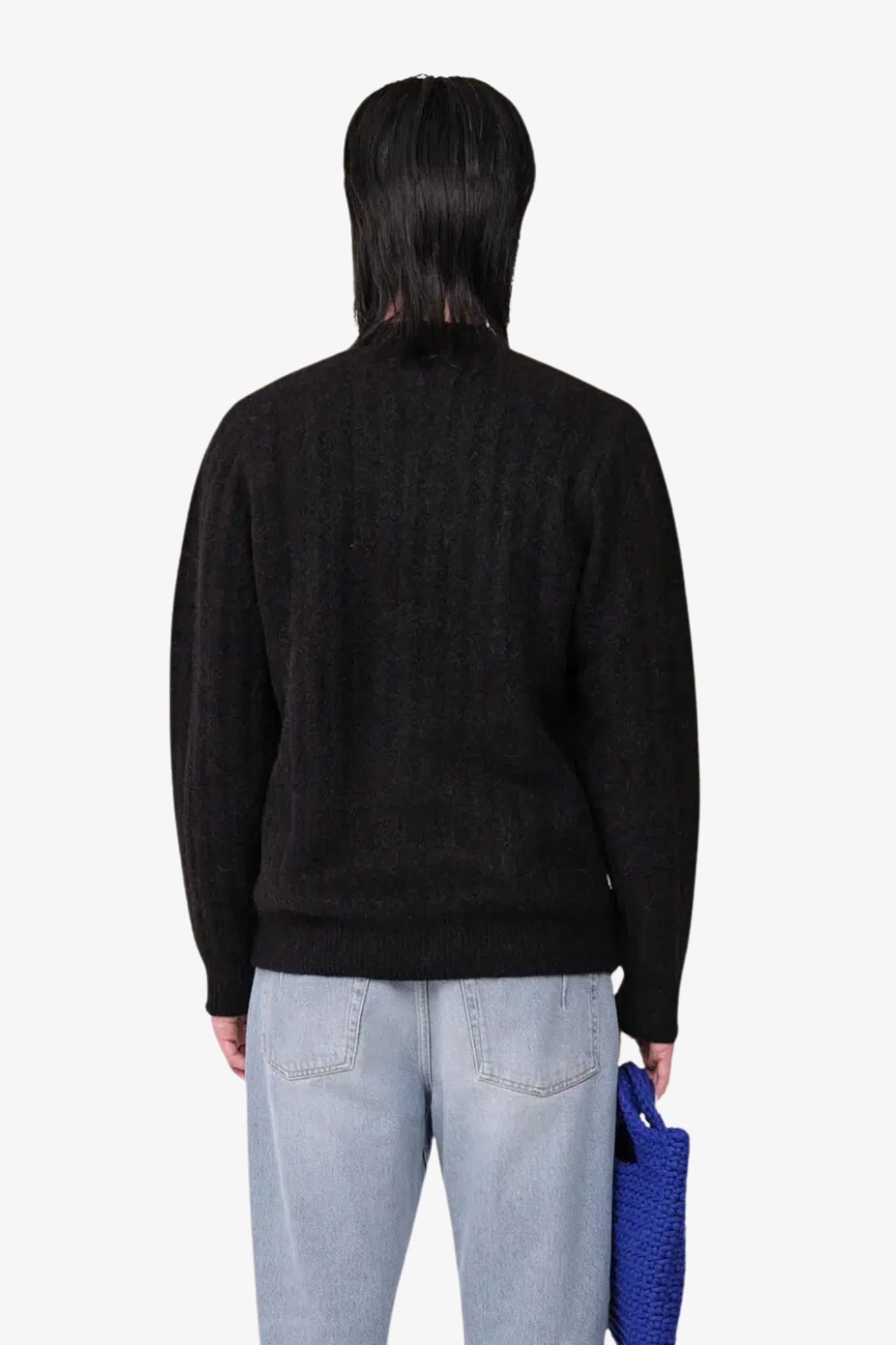 De trui heeft een normale pasvorm en is gemaakt van 32% alpaca, 32% wol en 30% nylon. Dit maakt het niet alleen comfortabel om te dragen, maar ook duurzaam voor langdurig gebruik. Met zijn klassieke zwarte kleur is deze trui een veelzijdige keuze die perfect aansluit bij elke gelegenheid.